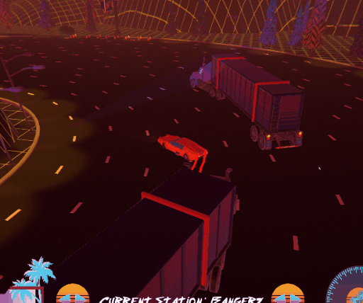 Divine Drifter is a push-your-luck score attack arcade game about drifting flawlessly around traffic circles, avoiding the other cars by the smallest possible margins. The core design principal is to make the player feel as cool as possible when they get into the flow.